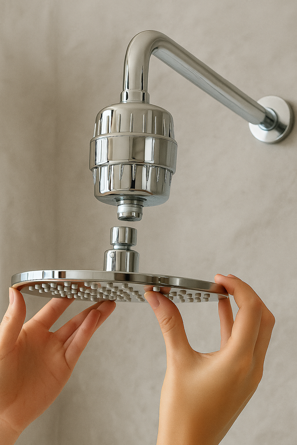 Next, the Vitamin C-infused filter media neutralises chemical residues that strip your skin and scalp of natural moisture. The result? Softer, balanced water that supports eczema-prone skin, reduces scalp buildup, and helps your hair retain strength and shine.