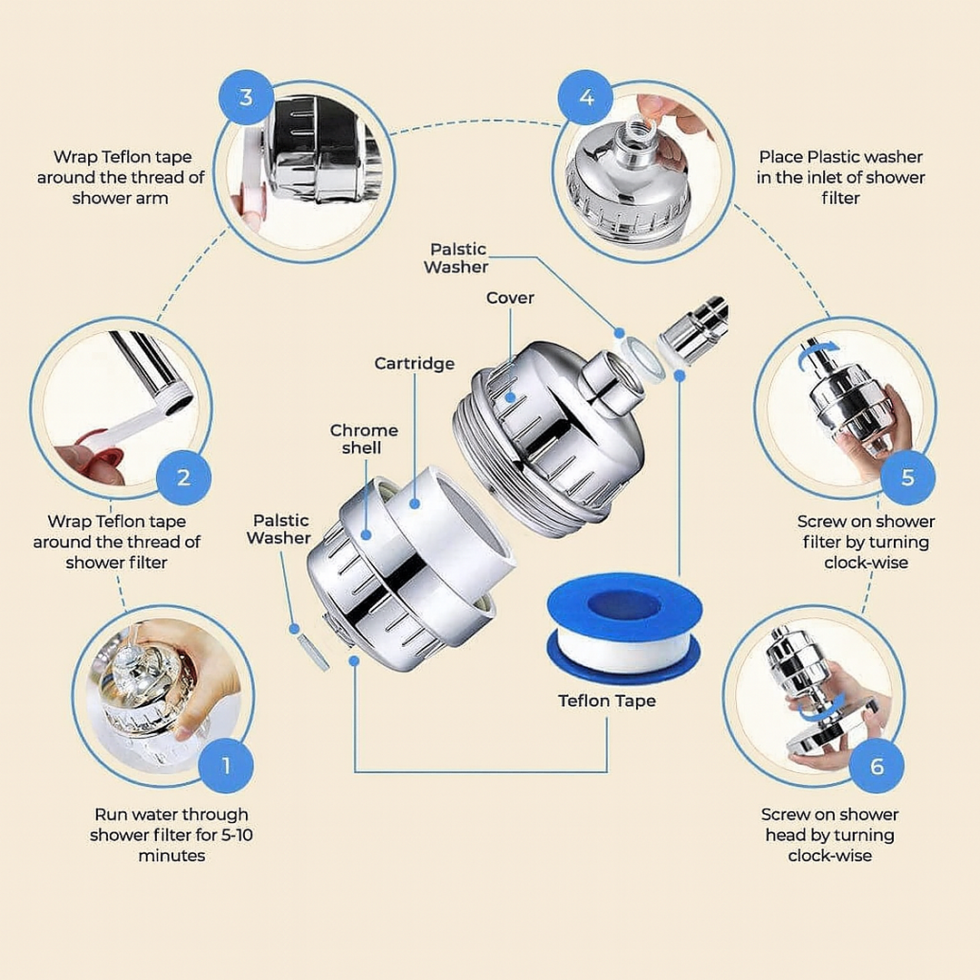 - The Flovella Shower Filter is designed to fit any standard ½-inch connection, making it fully compatible with all shower types.